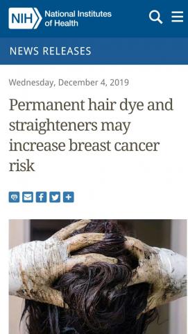 美国国立卫生研究院发文说--常染发、烫发的女性比不染不烫的更容易得乳腺癌--头发全白或半黑半白,不是很有“武侠风”吗?